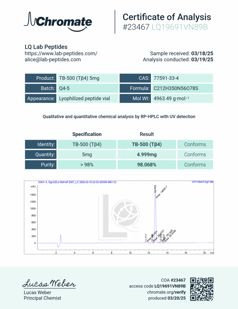 At BlackOps Biotech, transparency and product integrity guide everything we do. Each of our formulations undergoes independent third-party testing to ensure that what’s in the vial matches the label. Below you’ll find openly accessible Certificates of Analysis (COAs) for every product we offer — giving you peace of mind and a clear view into our rigorous quality standards.