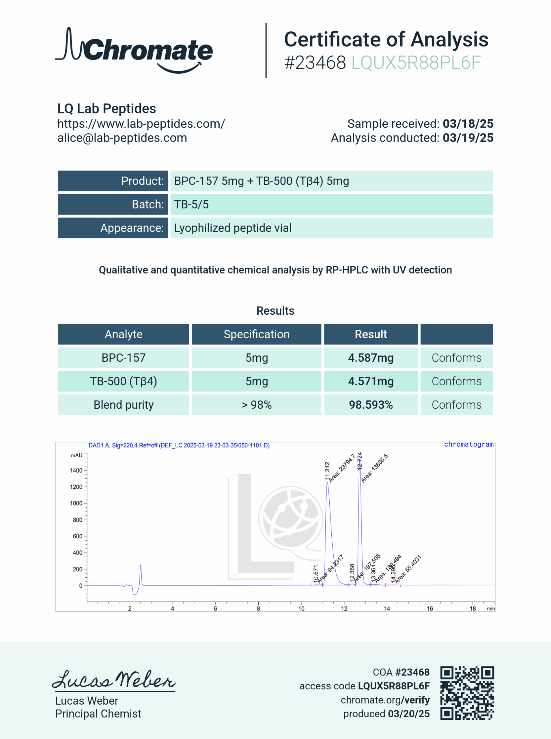 At BlackOps Biotech, transparency and product integrity guide everything we do. Each of our formulations undergoes independent third-party testing to ensure that what’s in the vial matches the label. Below you’ll find openly accessible Certificates of Analysis (COAs) for every product we offer — giving you peace of mind and a clear view into our rigorous quality standards.